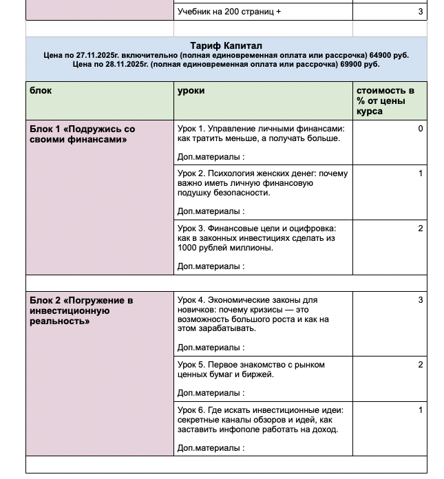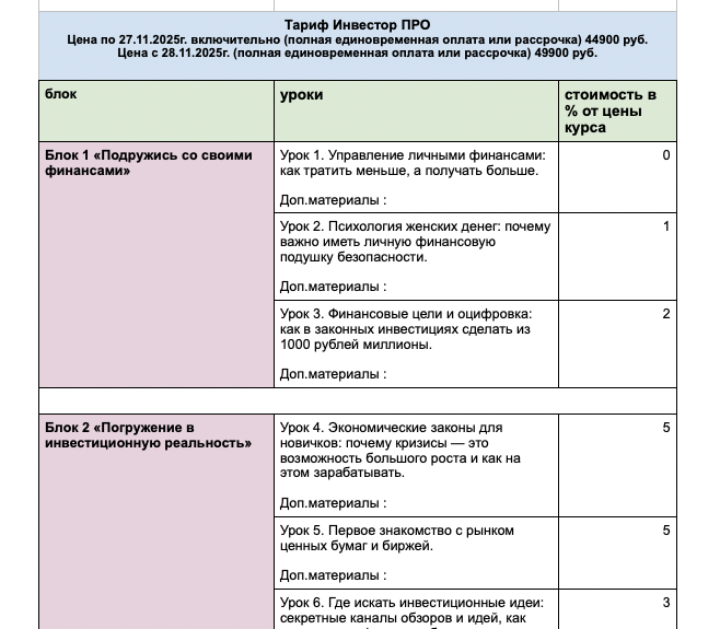 1.7.1. Курс – это образовательный продукт Исполнителя «Азбука инвестиций», который проходит в течение определенного периода времени и состоит из серии уроков, модулей, вебинаров и иных методов донесения информации, объединенных одной темой и имеющих логическую последовательность.